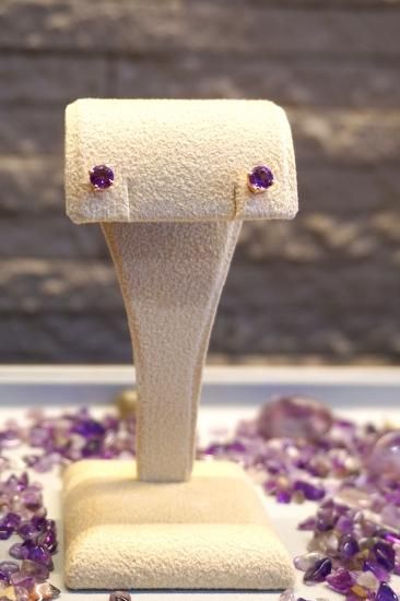 高貴な色を表す紫色のアメシストは、華やかに、そして大人っぽく耳元を飾ってくれる宝石です。