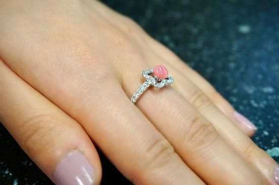 主役のコンクパールは、独特のトロみのあるピンクが非常に美しく、見つめているとウットリするほど綺麗です。言葉では言い表せない美しさを、是非お手にとってご覧いただきたいです。